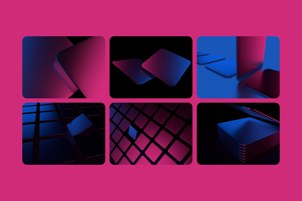 3D renders depicting highly reflective plane-like objects in a variety of compositions.